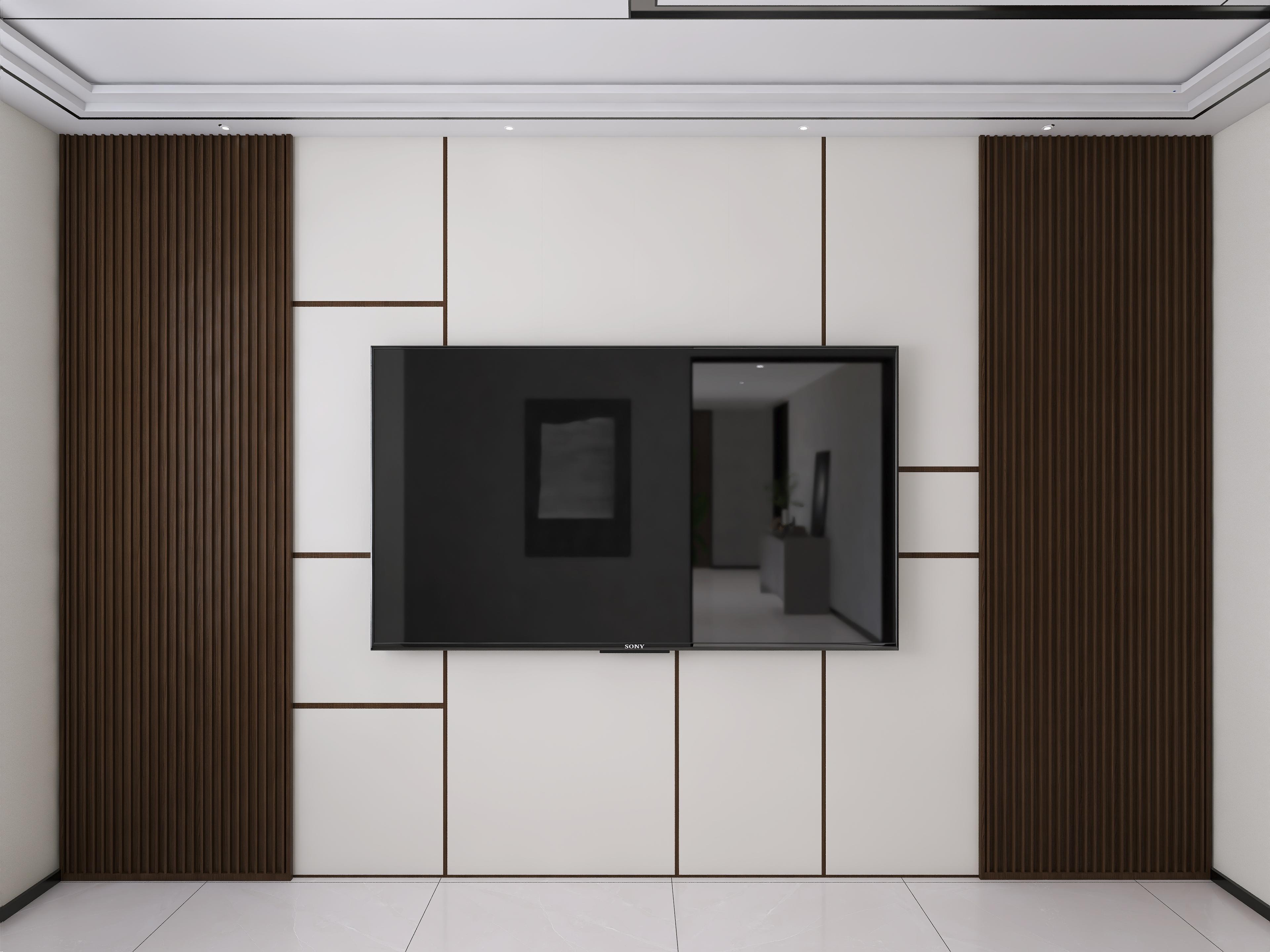 تصميم "وحدة تلفزيون مودرن بخطوط خشبية ولوح خشب بإضاءة عمودية" يجمع بين الدفء والأناقة بفضل استخدام الخشب الطبيعي بأسلوب عصري. الجدار يتكون من خطوط خشبية داكنة تمنح حركة وعمقًا، يتوسطها لوح خشب بإضاءة عمودية أنيقة تضيف لمسة فخامة دون مبالغة. يمزج التصميم بين الخامة القماشية المحايدة والجدار الخشبي بشكل متناغم، ما يجعل التلفزيون بارزًا بطريقة بسيطة وراقية. يناسب هذا التصميم المساحات الحديثة الباحثة عن طابع نظيف وفخم في آن واحد.